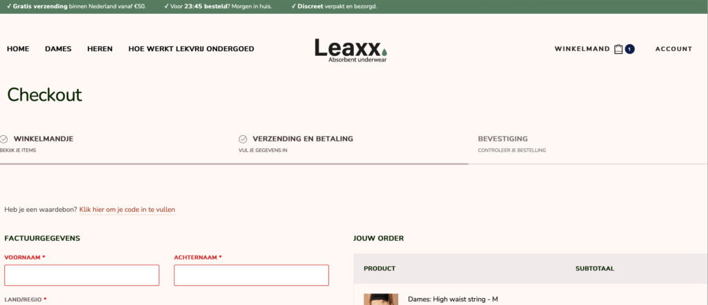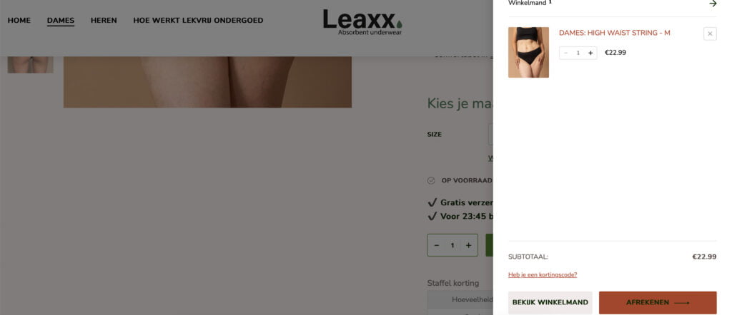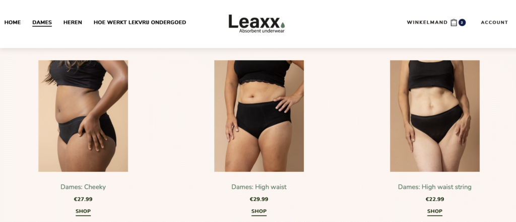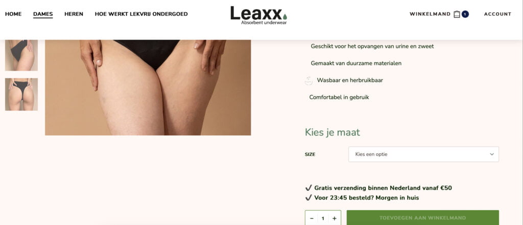 Bij Leaxx lekvrij ondergoed streven wij naar de beste ondersteuning bij het aanbieden van ons product. Heeft u moeite bij het plaatsen van een bestelling binnen de website van Leaxx? Onderstaand bieden wij u de bestelhulp die stapsgewijs ondersteund bij het plaatsen van een bestelling. Mocht u hierna nog vragen hebben kunt u altijd contact opnemen met onze klantenservice: info@leaxx.com